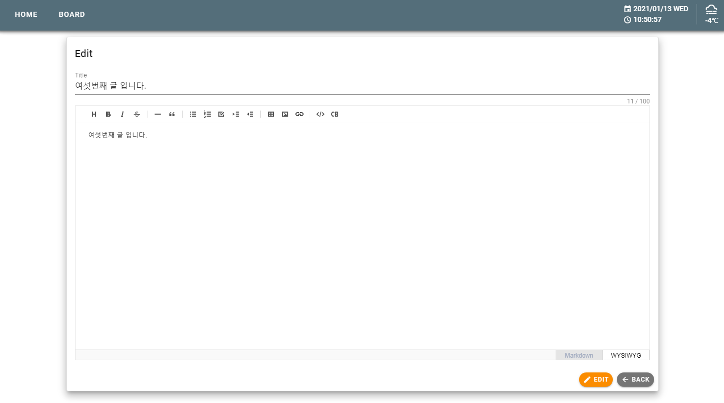 | [Spring Boot + Vue.js] 게시판 만들기 - 날짜, 시간, 날씨 (0) | 2021.01.13 |