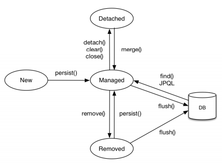 EntityManager.detach(entity): 특정 엔티티만 준영속 상태로 전환EntityManager.clear(): 해당 EntityManager 내 있는 영속 상태(엔티티)를 초기화EntityManager.close(): 영속성 컨텍스트 종료