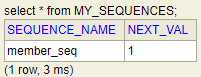 ※ 시퀀스를 지정할 컬럼의 자료형은 숫자형이어야 한다. (int는 0이 있어서 불가, Integer도 10억자리 넘으면 초기화되어 불가능하여 주로 Long 사용)