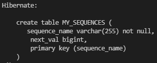 | sequenceName | DB에 등록되어 있는 시퀀스 이름 | hibernate_sequence |