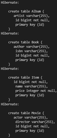 @Inheritance(strategy = InheritanceType.TABLE_PER_CLASS) // 기본 전략은 SINGLE_TABLE