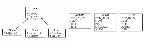 - 객체의 상속 구조와 DB의 슈퍼타입 서브타입 관계를 매핑하는 것