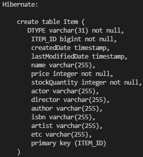 @Inheritance(strategy = InheritanceType.SINGLE_TABLE) // 단일 테이블 전략