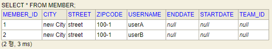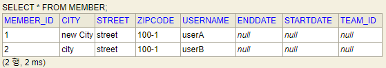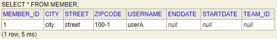 NULL이면 매핑한 컬럼 값 모두NULL) - 임베디드 타입을 사용하기 전과 후에 매핑하는 테이블은 같다.