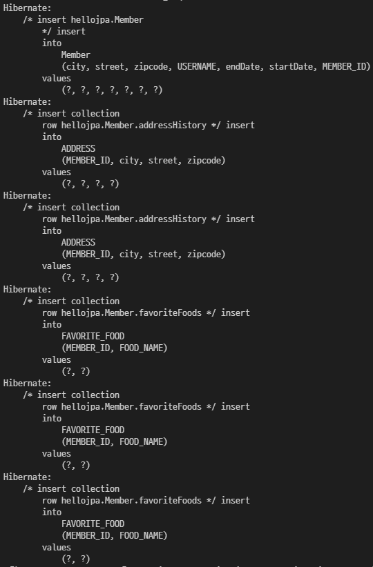 - 실무에서는 상황에 따라 값 타입 컬렉션 대신에 일대다 관계를 고려하는 것이 더 좋다.