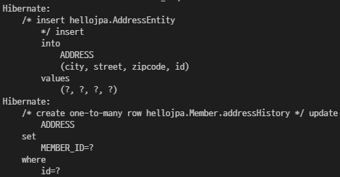 findMember.getAddressHistory().add(new AddressEntity("oldCity1", "street", "zipcode"));