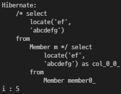 String query = "select locate('ef', 'abcdefg') from Member m";