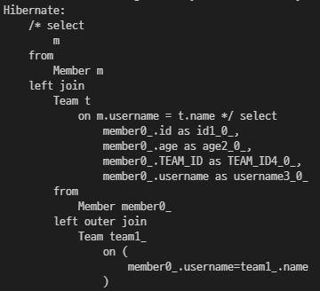 String query = "select m from Member m left join Team t on m.username = t.name";