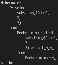 String query = "select substring('abc', 2, 3) from Member m";