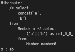 String query = "select concat('a', 'b') from Member m";