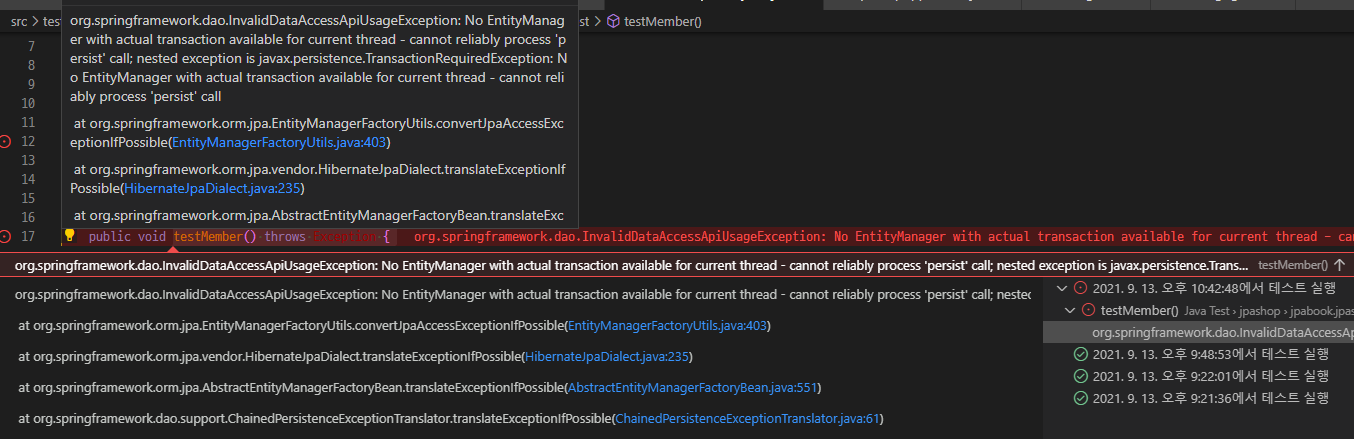 // 엔티티 없어서 테스트 실패, 트랜잭션이 없기 때문