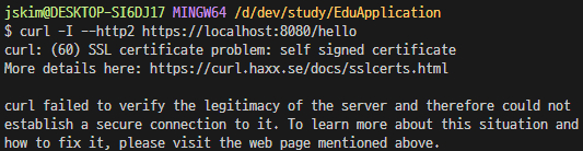 * 키스토어 내 존재하는 인증서가 공인된 인증서가 아니기 때문에 경고 페이지 출력