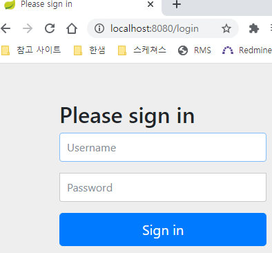 접근 시 스프링 시큐리티에서 제공하는 로그인 페이지 표시